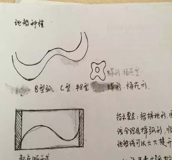 ❹小地形上的弧线尽量使线条夸张,变化明显,曲线灵活。不建议弧度变化小的种植形式。