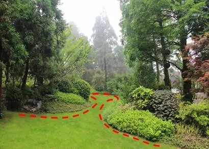 ❶根据地形、园路、林缘线合理选择弧形,尽量保证线条顺畅完整。大地形以大弧为主,小地形和花境可以采用碎拼和小弧多变曲线。