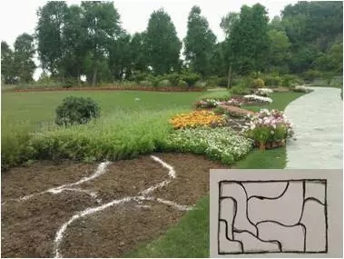 ❷规则矩形或三角地形采用起点断开式,碎花拼接式(适用于小地形或花境营造)。