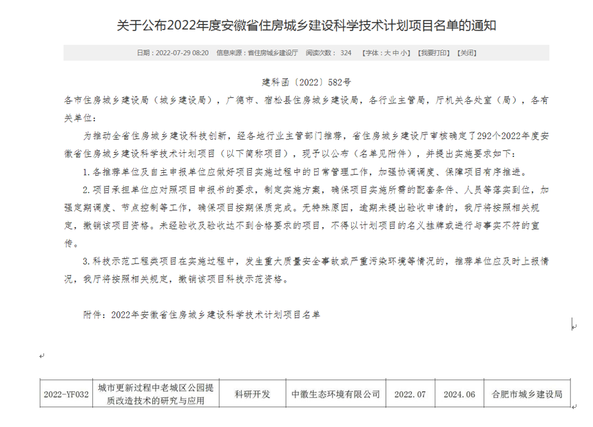 7月29日,根据安徽省住建厅网站公布,我leyu乐鱼·官方web站登录入口申请承担的2022年度安徽省住房城乡建设科学技术计划项目“城市更新过程中老城区公园提质改造技术的研究与应用”被批准立项。 该项目计划通过对老城区公园提质改造技术的研究和应用,不仅达到改善老城区生态环境、提高人民生活质量,同时也能满足城市化进程的需要以及社会对于公园功能提升的需求。项目的实施将促进城市公园体系建设的发展,具有很强的示范意义和推广价值。 该项目成功立项是leyu乐鱼·官方web站登录入口的科研实力和技术服务能力进一步提升的表现。leyu乐鱼·官方web站登录入口将依据省住建厅科技项目管理文件的精神,严格按照项目计划组织实施,确保成果和考核指标的完成,保证项目顺利通过验收。 ![]() |