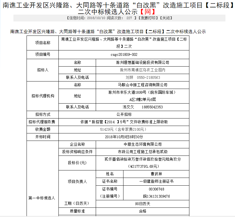 leyu乐鱼·官方web站登录入口中标“滁州市南谯工业开发区兴隆路、大同路等十条道路白改黑改造施工项目”