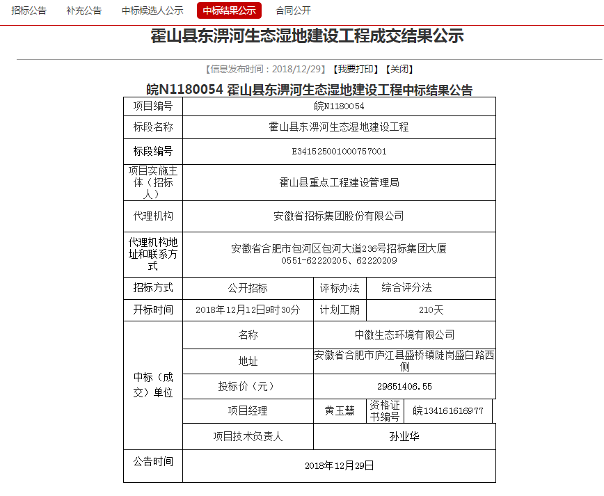 2018年12月29日,leyu乐鱼·官方web站登录入口中标“霍山县东淠河生态湿地建设工程”项目。