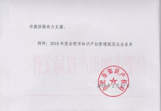 2019年3月1日,从合肥市知识产权局获悉,我leyu乐鱼·官方web站登录入口成功通过“合肥市知识产权管理规范企业”认定。