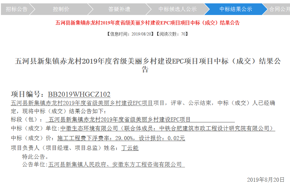 leyu乐鱼·官方web站登录入口中标“五河县新集镇赤龙村2019年度省级美丽乡村建设EPC项目”