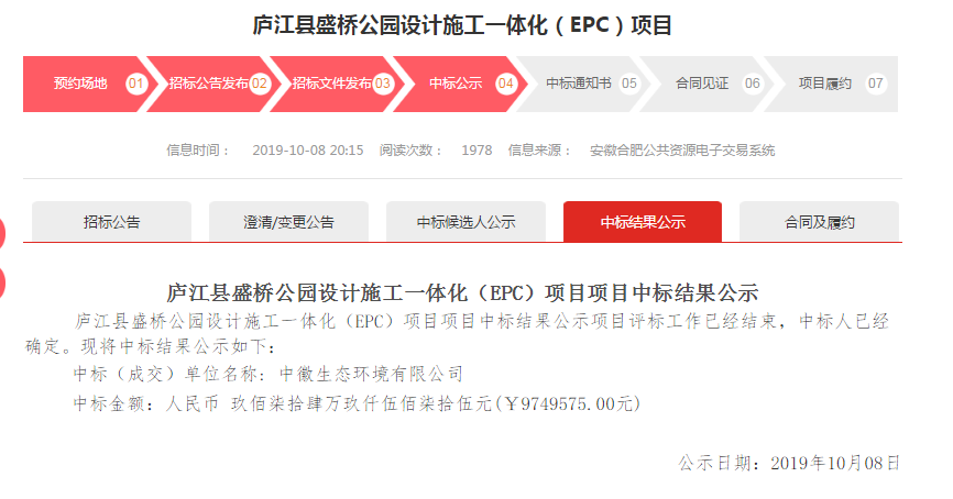 2019年10月8日,leyu乐鱼·官方web站登录入口中标“庐江县盛桥公园设计施工一体化(EPC)项目”。