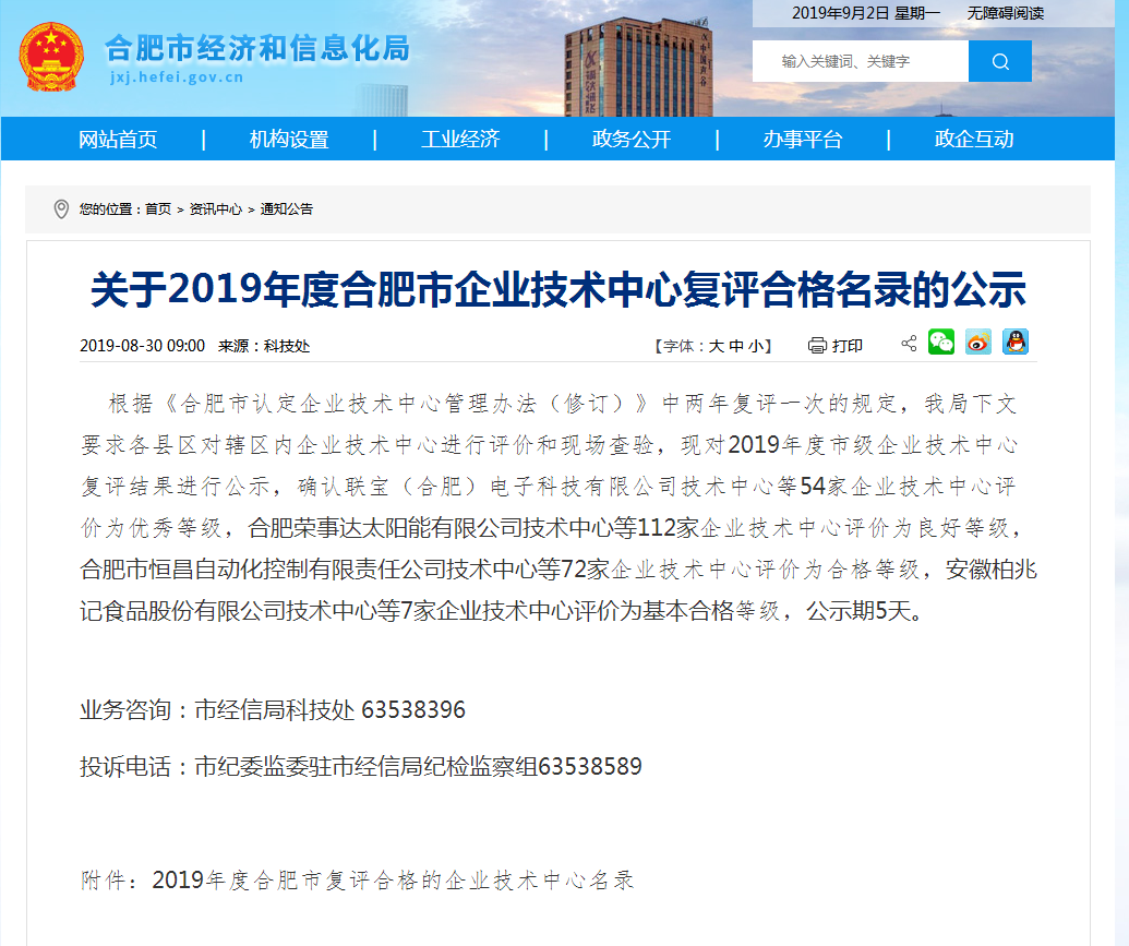 中徽生态企业技术中心于2018年6月28日通过合肥市经济和信息化局认定,企业技术中心复审通过是合肥市经济和信息化局对中徽生态企业技术中心的创新能力、创新业绩给予的高度肯定与认可。leyu乐鱼·官方web站登录入口将以合肥市企业技术中心为基石,建立和完善适合本企业发展的以企业为主体、产学研相结合的技术创新体系,大力提升技术创新能力,持续增加研发资金投入,高度重视知识产权工作,力争在科技研发、标准制定、专利申请、人才队伍建设发面取得明显成绩,有效提升企业核心竞争力,使leyu乐鱼·官方web站登录入口在行业的影响力不断扩大。