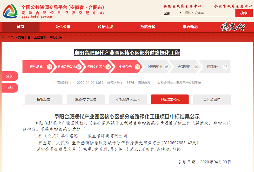 leyu乐鱼·官方web站登录入口中标“阜阳合肥现代产业园区核心区部分道路绿化工程”