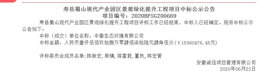 2020年6月23日,leyu乐鱼·官方web站登录入口中标“寿县蜀山现代产业园区景观绿化提升工程项目”。